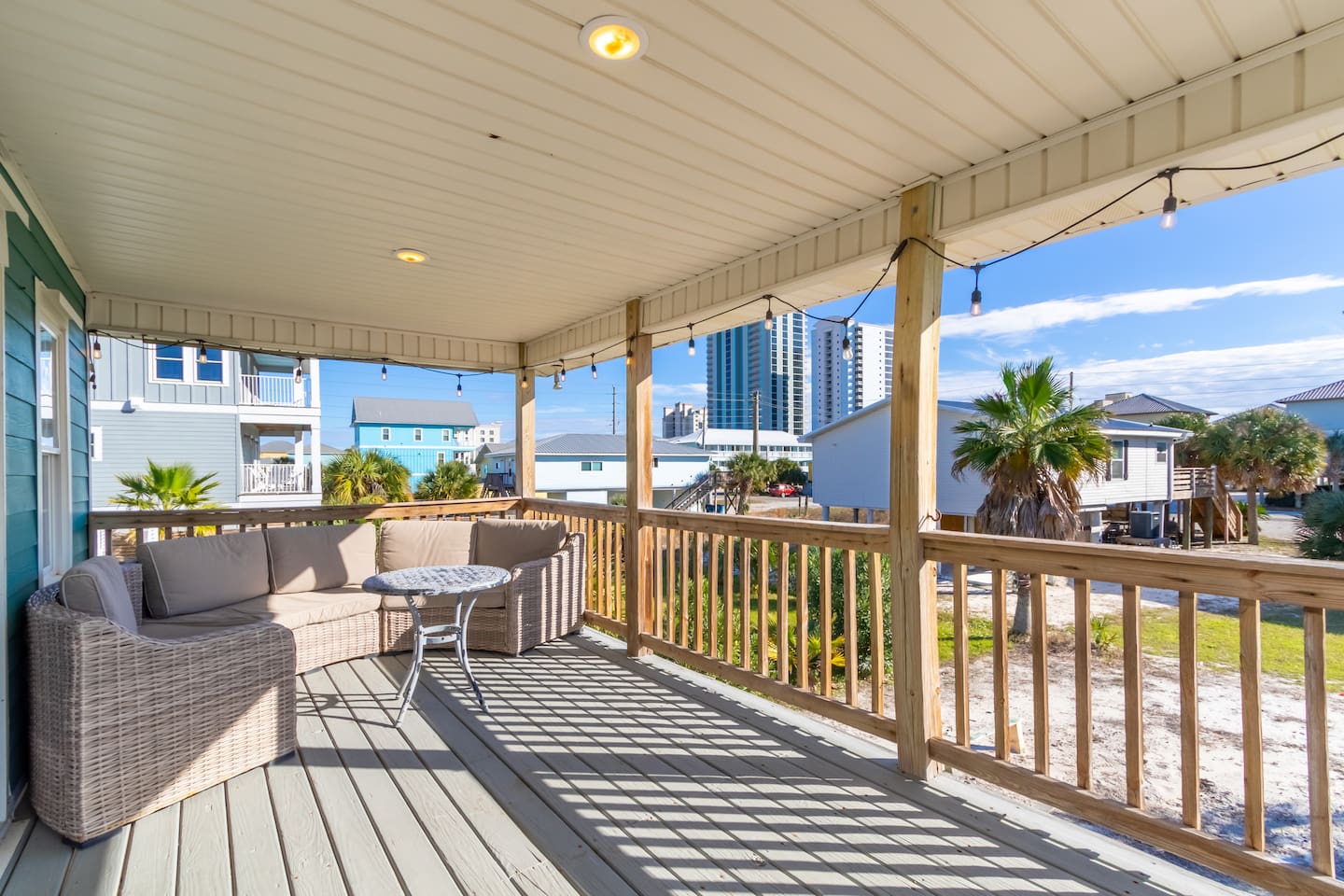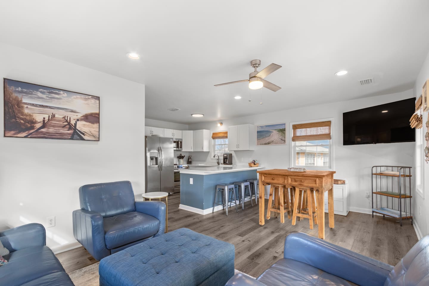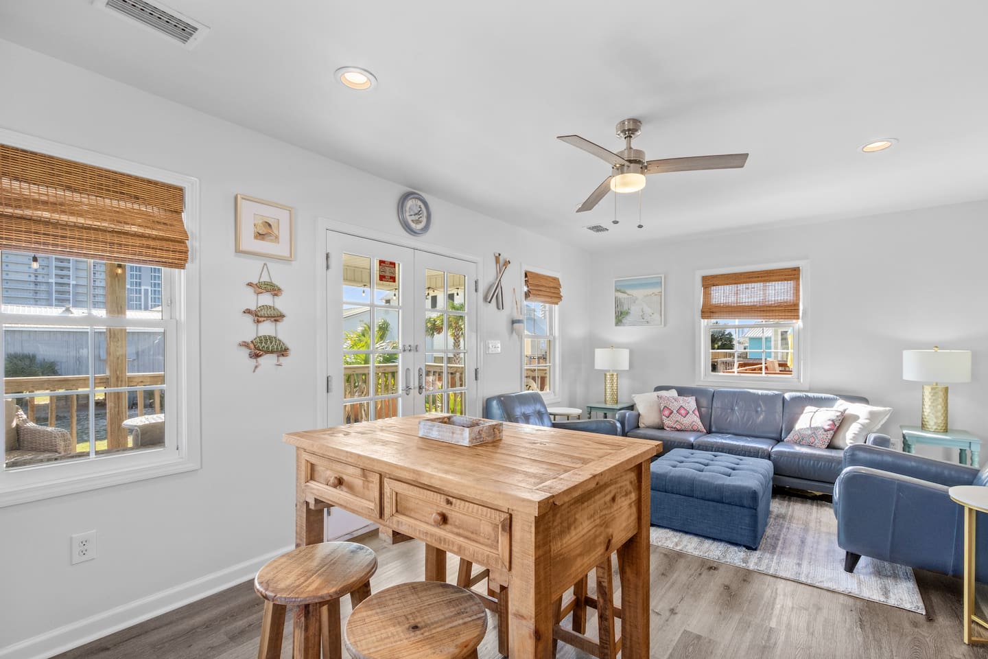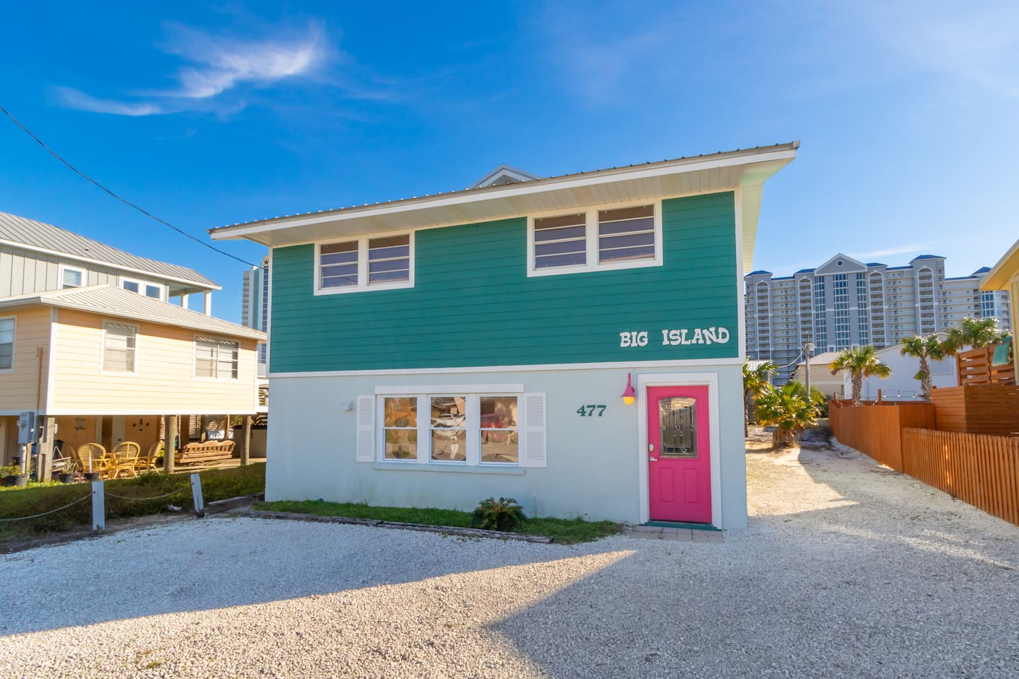 Perfect for couples, small families, or a friends’ weekend: Sleeps 5 : 1 Queen bedroom and one king bedroom +1 sofa Comfortable living area for movie nights + post-beach lounging Kitchen + dining space (this property is built for easy two-unit stays with separate living/dining/kitchen spaces on each level) Duplex setup (important) This is the upper level unit in a duplex. Separate entrance for your unit ✅ Laundry area is the only interior space shared with the upstairs unit ✅ Traveling with a bigger crew? If both units are available, you can rent them together for a “2-for-1” cottage setup. Dog-friendly stay Bring your pup, big Island Cottage is dog friendly, so your best buddy can come enjoy the beach town vibes too. Location, location, location You’re staying in the heart of Gulf Shores, with an easy walk to: The Hangout (beachfront food, music, and family fun) The Hangout Restaurant Local beach access and the main Gulf Shores beach area The Hangout Restaurant Restaurants, shops, and the classic “park it and walk” vacation lifestyle