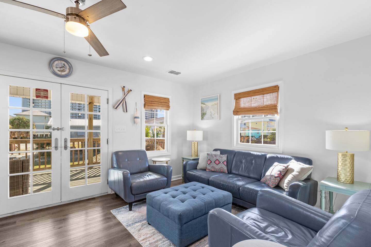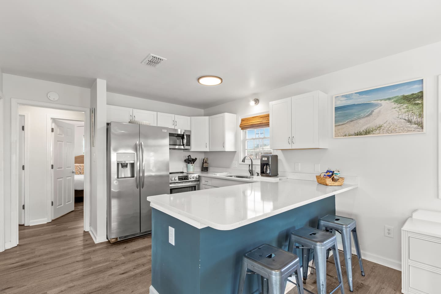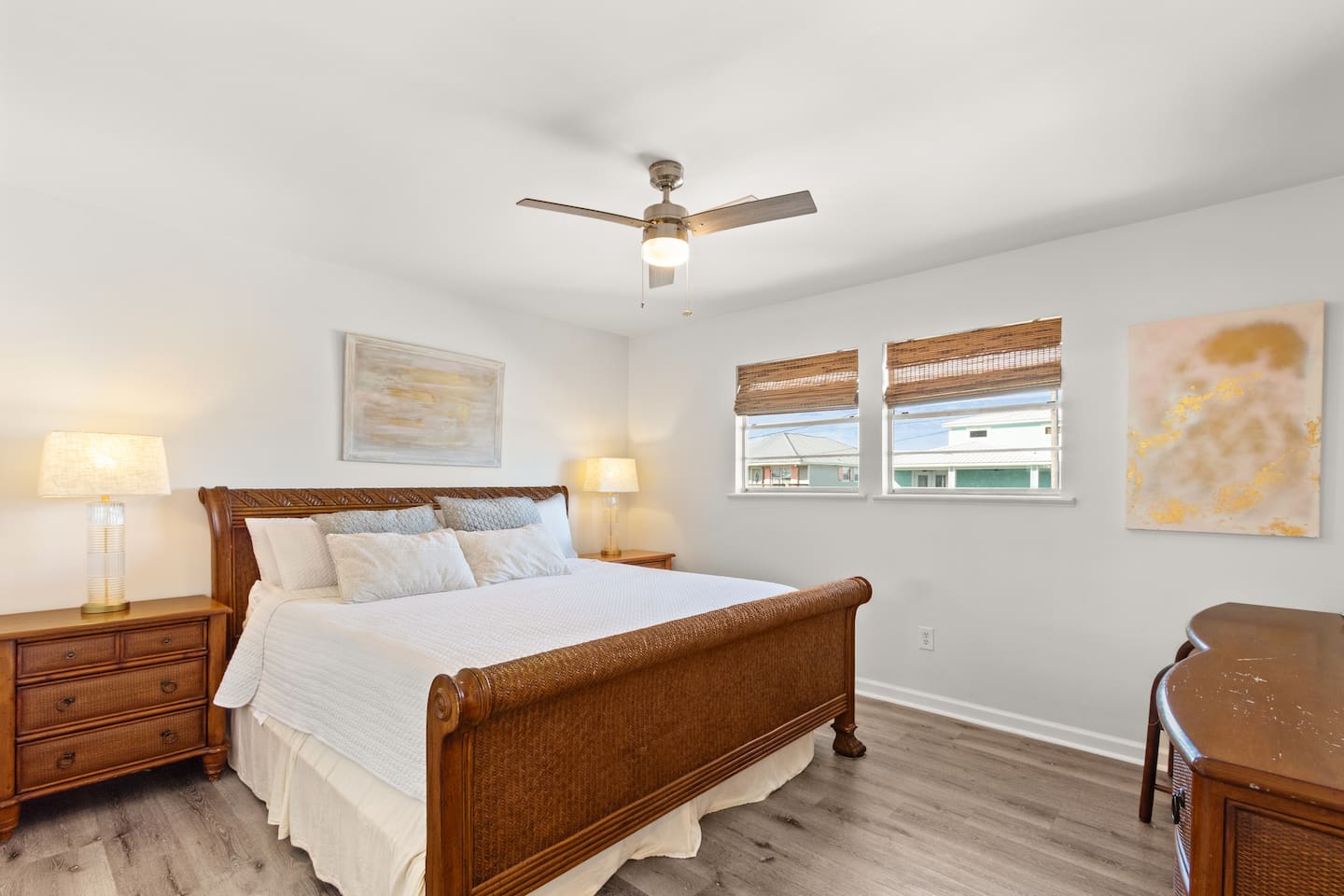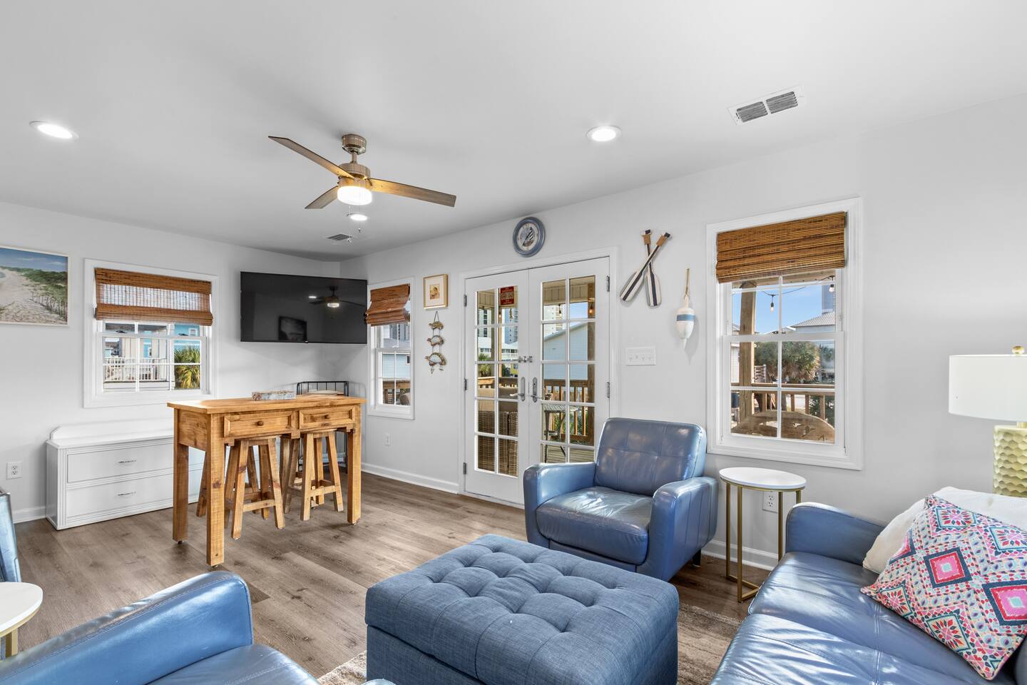 Perfect for couples, small families, or a friends’ weekend: Sleeps 5 : 1 Queen bedroom and one king bedroom +1 sofa Comfortable living area for movie nights + post-beach lounging Kitchen + dining space (this property is built for easy two-unit stays with separate living/dining/kitchen spaces on each level) Duplex setup (important) This is the upper level unit in a duplex. Separate entrance for your unit ✅ Laundry area is the only interior space shared with the upstairs unit ✅ Traveling with a bigger crew? If both units are available, you can rent them together for a “2-for-1” cottage setup. Dog-friendly stay Bring your pup, big Island Cottage is dog friendly, so your best buddy can come enjoy the beach town vibes too. Location, location, location You’re staying in the heart of Gulf Shores, with an easy walk to: The Hangout (beachfront food, music, and family fun) The Hangout Restaurant Local beach access and the main Gulf Shores beach area The Hangout Restaurant Restaurants, shops, and the classic “park it and walk” vacation lifestyle